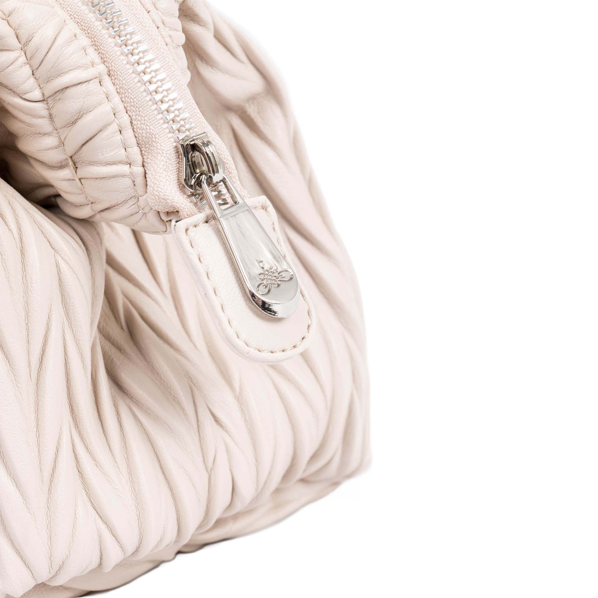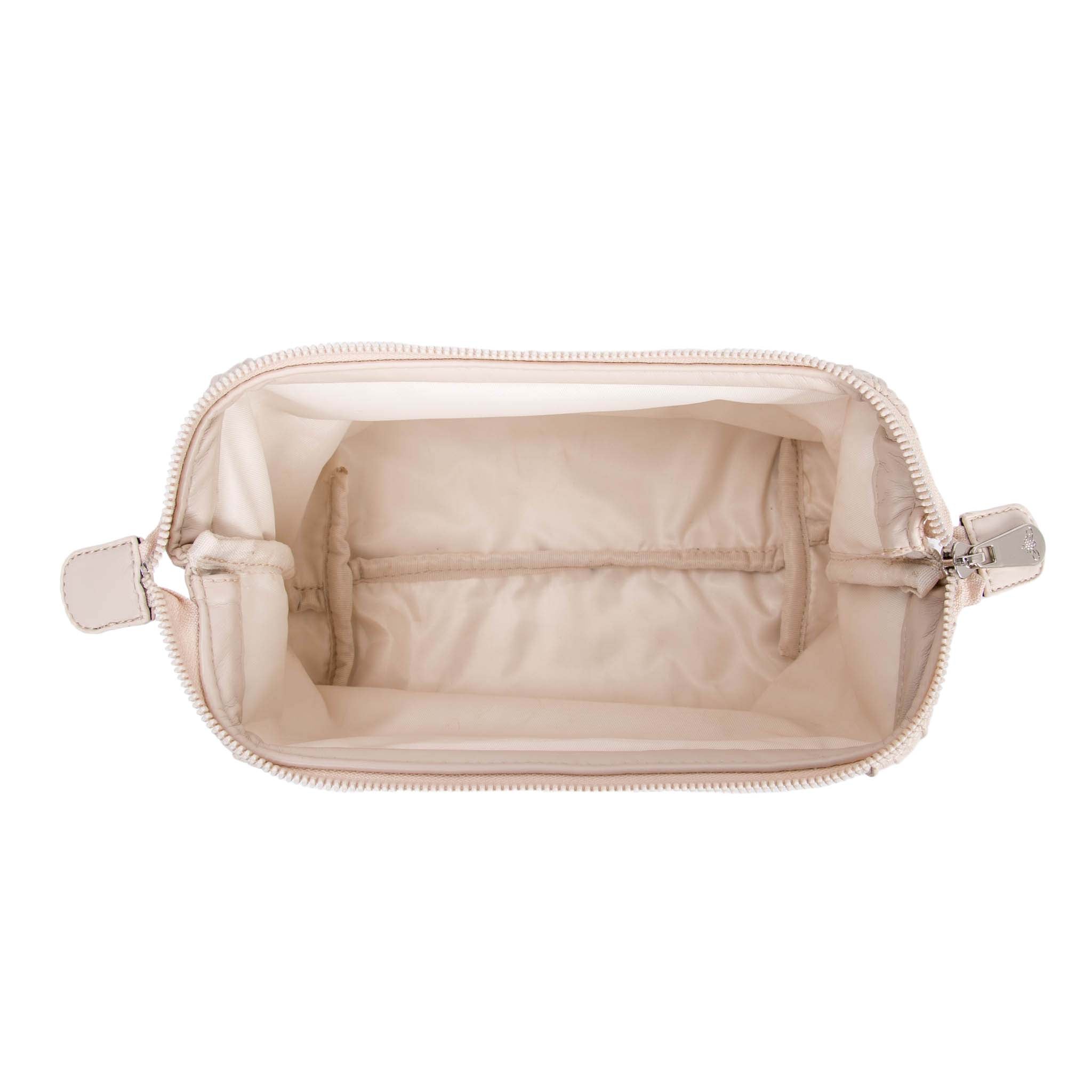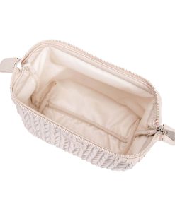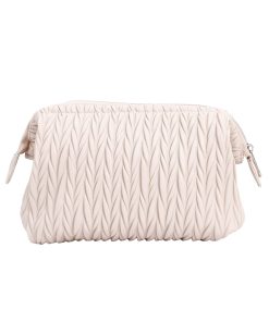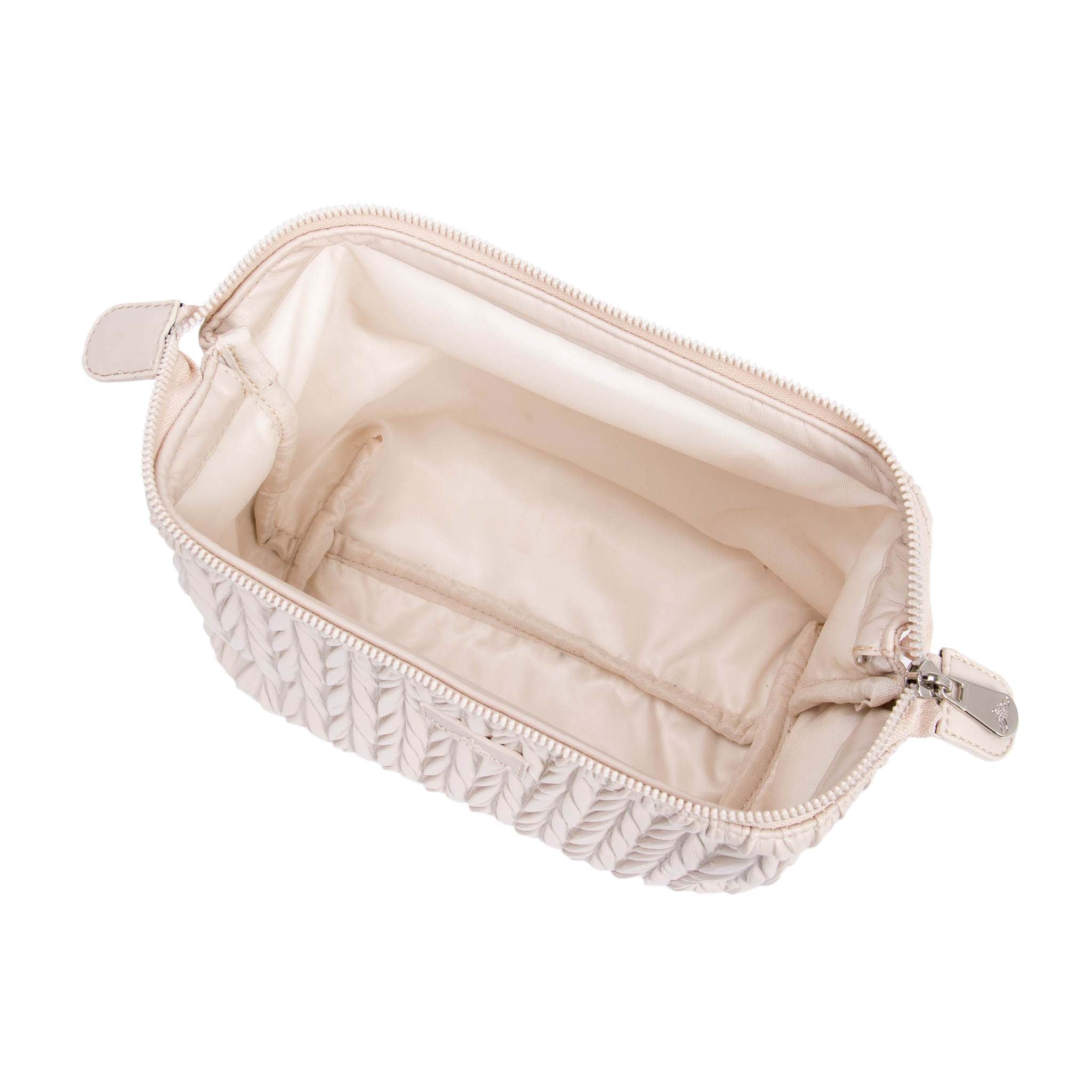The Cannes cosmetic bag features a luxurious matelassé pattern that adds depth and elegance to its design, creating a three-dimensional effect. Crafted from smooth faux leather, this bag combines timeless style with practicality.