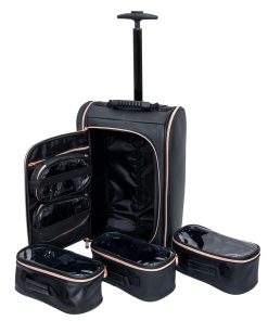 Get ready for the ultimate travel companion that keeps all your Slayssentials with you. Designed with plenty of pockets and 5 removable pouches, this case will keep all your necessities organized. The CONVERTIBLE Travel Organizer Makeup Case converts from a rolling case to a backpack for multi-functional use and features a high quality faux leather exterior and contrast rose gold trim.