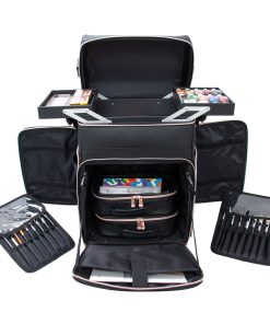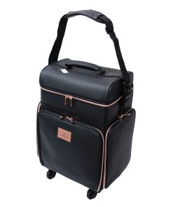 The Impressions Vanity SLAYssentials LUXE 24-inch Travel Organizer Makeup Case, features high-quality faux leather exterior with contrast rose gold trim. Superior mobility with 360º spinner capability and 4 removable wheels. This makeup case is the perfect companion for glam on-the-go. Featuring bonus pouches and makeup brush holders to help organize all your makeup accessories.