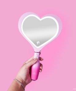 Feel inspired when getting ready with the Barbie™ LED Handheld Makeup Mirror with Standing Base ✨This heart-shaped mirror is a stunning blend of form and function, adorned with the iconic Barbie heart logo, making it a fashion statement in itself. It is illuminated by a built-in luminous LED light strip, and a simple tap powers up the light for your makeup sessions. Adjust the brightness effortlessly by pressing and holding the button to create your desired ambiance.The mirror comes with a magnetic ball standing base, providing hands-free convenience for seamless use. Moreover, it’s rechargeable, offering a cordless experience. Recharging is a breeze—simply plug in the USB charger to the mirror, and the handy light indicator lets you know when it’s ready: red while charging, and blue when fully charged.