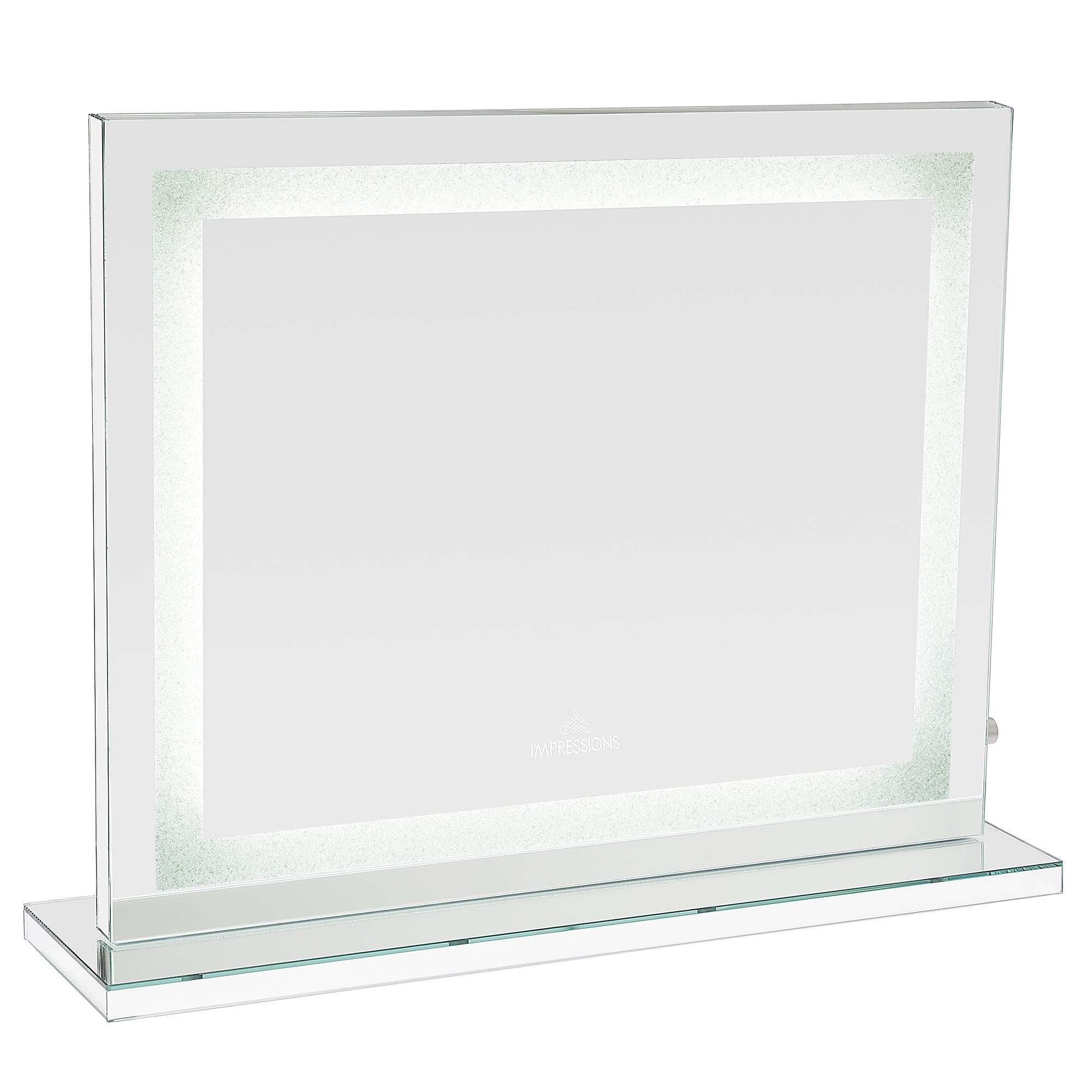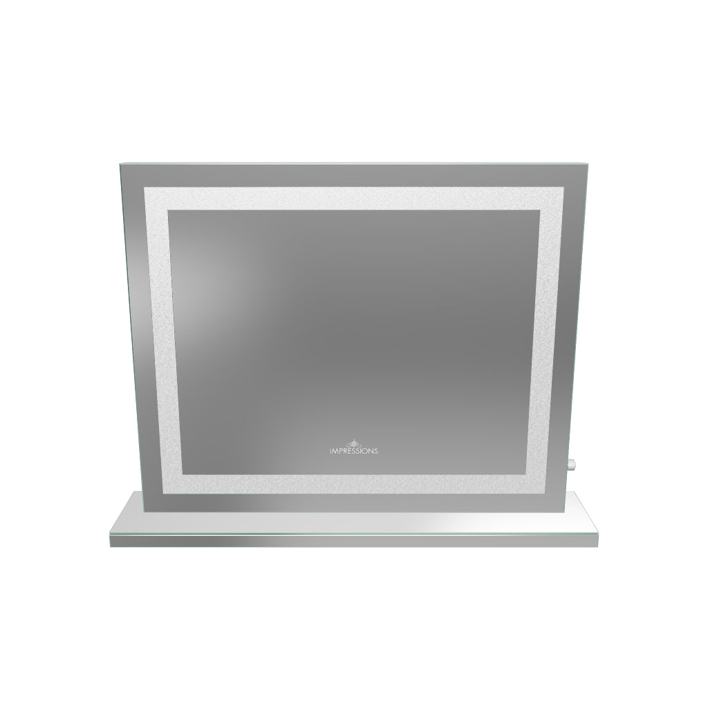 The Cristal Plus Vanity Mirror is the classic vanity experience— the Hollywood Glam design that provides perfect, even lighting and superior mirror reflection clarity. Featuring crystal sandblasting around the mirror and LED strips for bright lighting equipped with a knob dimmer switch. The mirror is encased in a robust aluminum body that can easily be wall-mounted with the pre-installed mounting hardware or mount it on a SlayStation with the included base!Bluetooth option: The Cristal Plus comes with 2 wireless Bluetooth speakers on the back and super bright LED lights integrated into the mirror with a knob dimmer on the right frame to control your light intensity! Only Impressions Vanity® Hollywood Vanity Mirrors are certified by ETL, CE, and RoHS safety standards