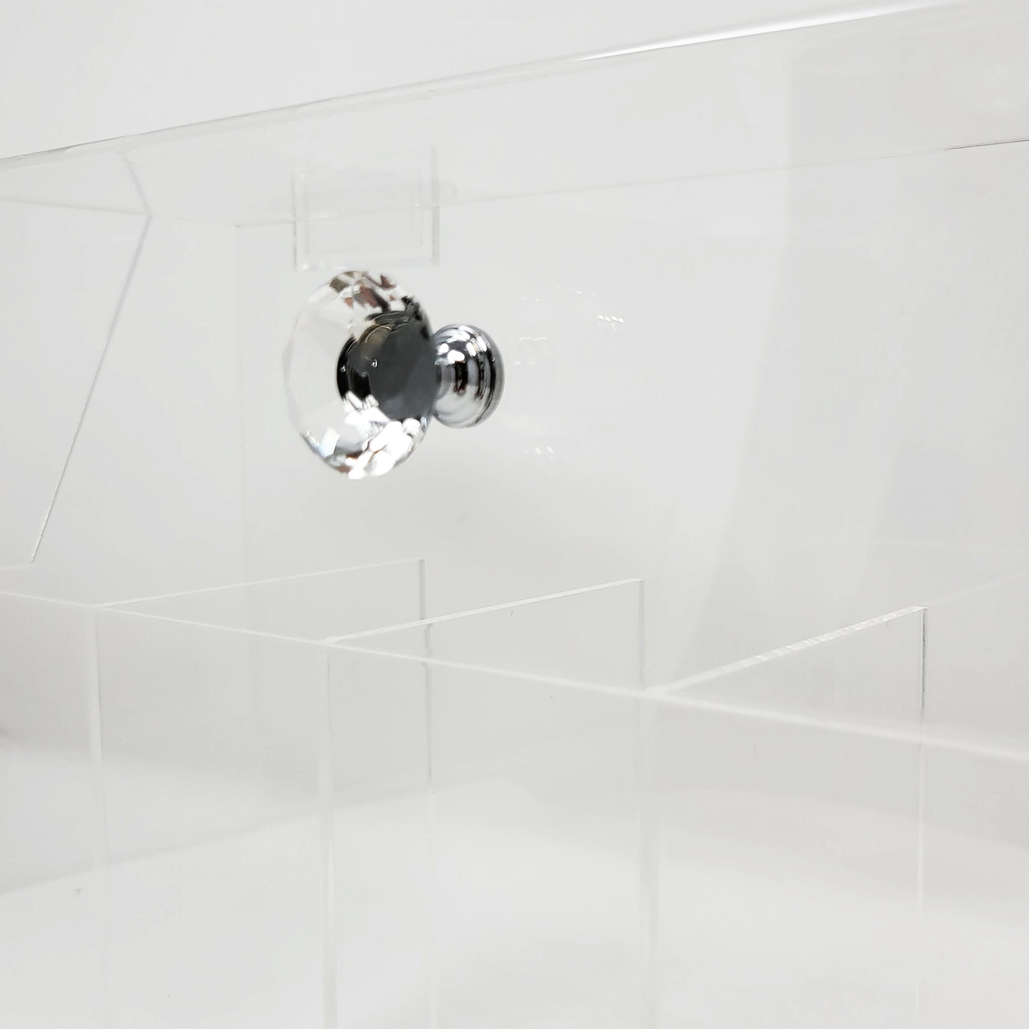 Organize and showcase your favorite blending tools in style with the Impressions Vanity® Diamond Collection Acrylic Makeup Brush Organizer. This stunning piece will hold all your brushes and more! 5 spacious slots, made with high-quality, crystal-clear, acrylic with a luxurious diamond-style knob. This is the perfect companion to any Impressions Vanity item and will add glitter and glam to your beauty room.
