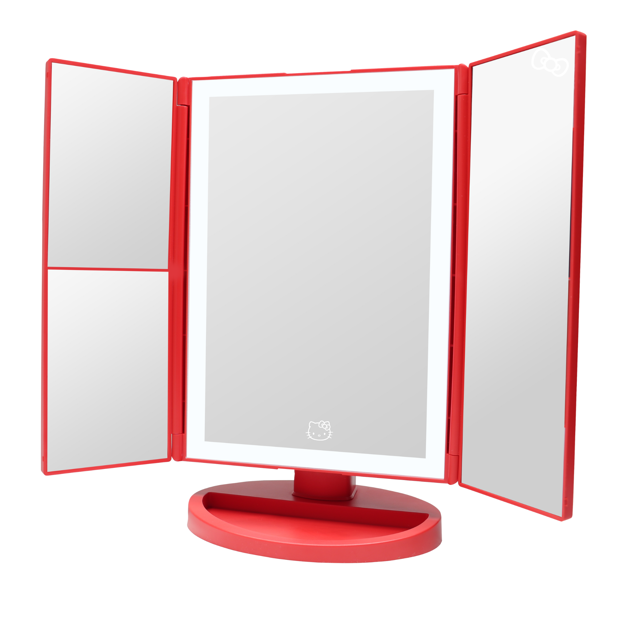 Add a classic and supercute touch to your daily beauty routine with the Hello Kitty®️ “Bows” Trifold LED Makeup Mirror.