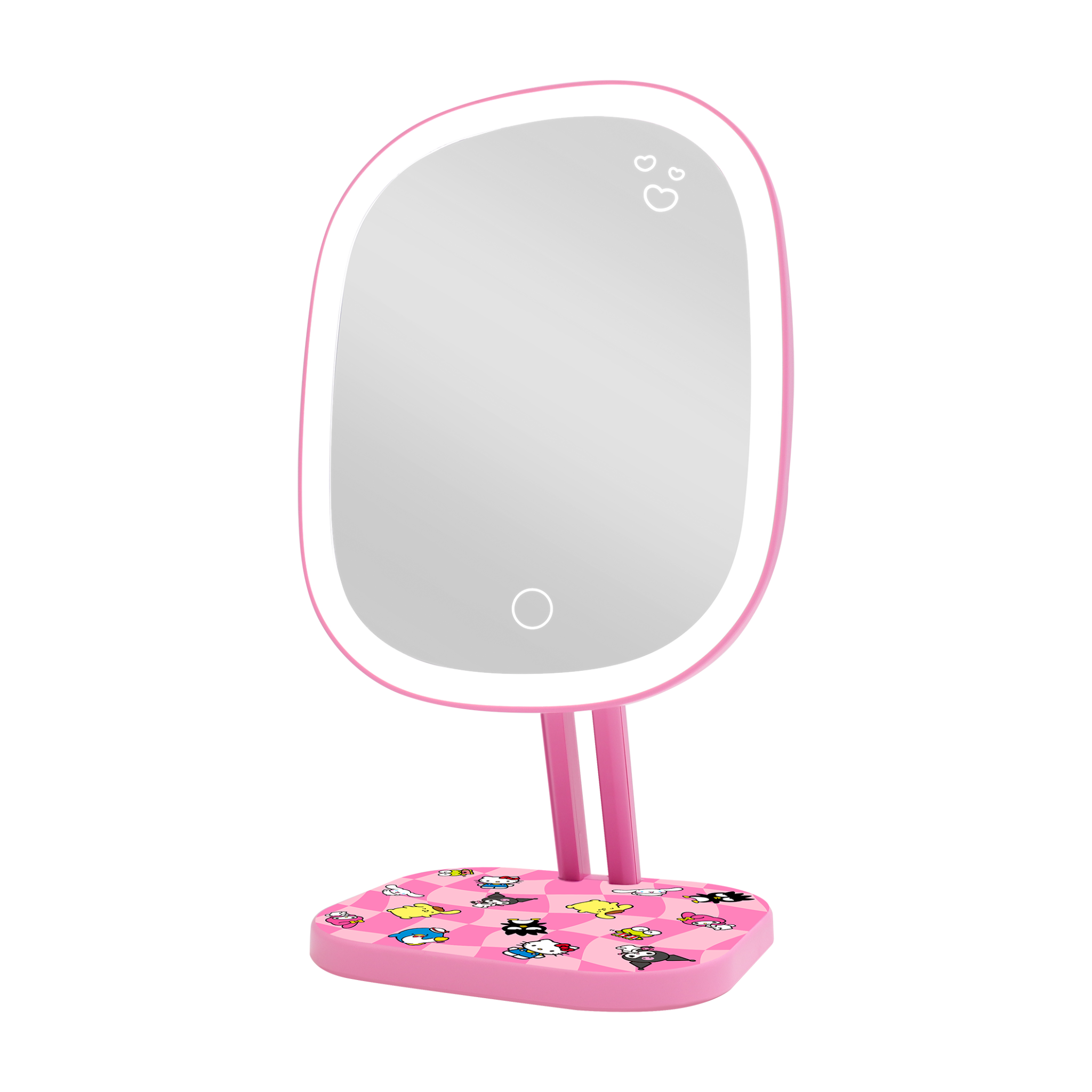 Illuminate your room with the surrounding LED strip light by simply tapping the soft touch sensor. Designed with portability in mind with its detachable base for easy packing. Artwork features Badtz-maru™, Cinnamoroll™, Hello Kitty®, Keroppi™, Kuromi™, My Melody™, Pompompurin™ and Tuxedosam™.