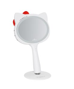 Have a supercute makeup routine with the Hello Kitty® LED Handheld Makeup Mirror. This handheld mirror features a figural design adorned with an iconic red bow and yellow nose.With a crystal-clear mirror and ultra-bright LED lights, achieving flawless makeup application from every angle is effortless. Customize the brightness to your preference and enjoy the ergonomic handle with a soft-touch finish for added comfort and stability.