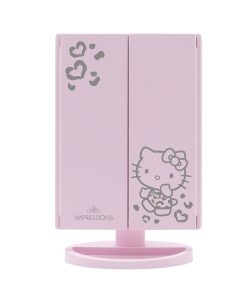 Your makeup routine just got so much cuter with the Impressions Vanity® Hello Kitty Trifold LED Tri-Tone Makeup Mirror with Magnification. Catch every detail with three mirror panels easily adjustable to your unique makeup lighting needs.