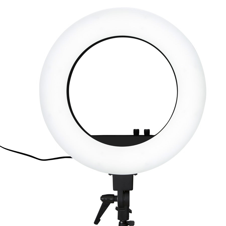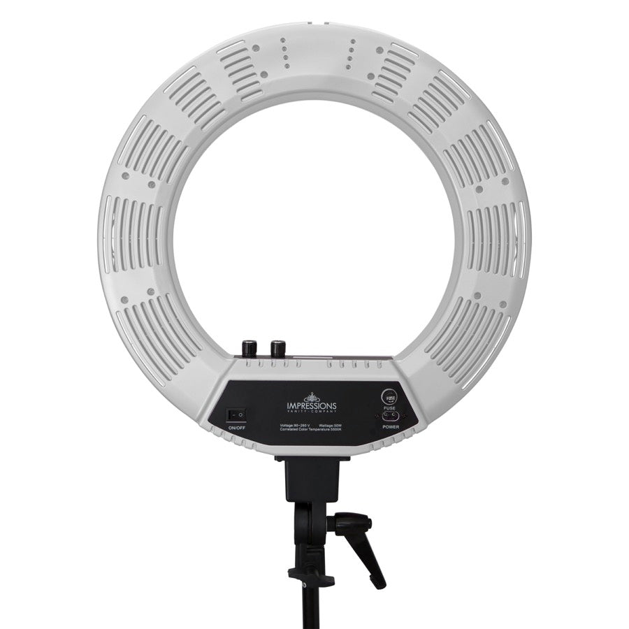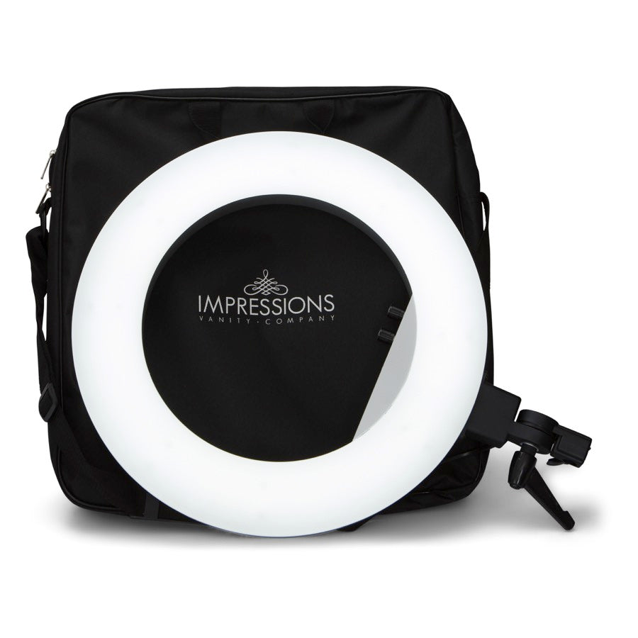 Impressions Vanity Shop Makeup Lighting 18-inch Duotone Led Vanity Studio Ring Light With Stand, Bag And Accessories | Black