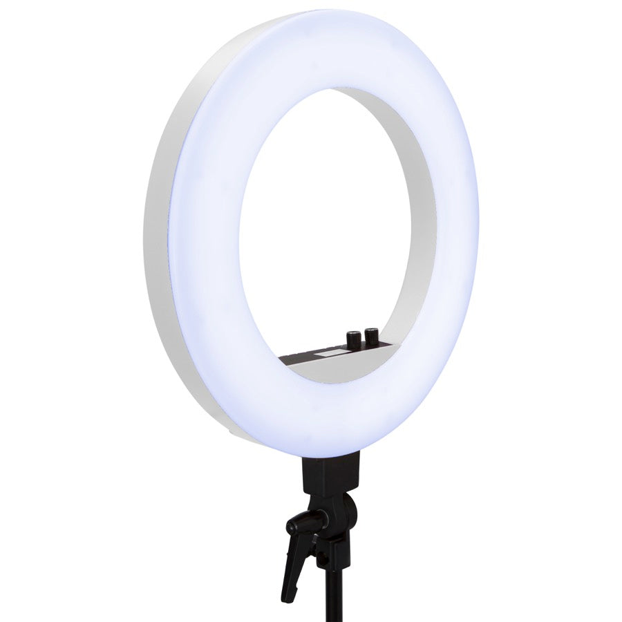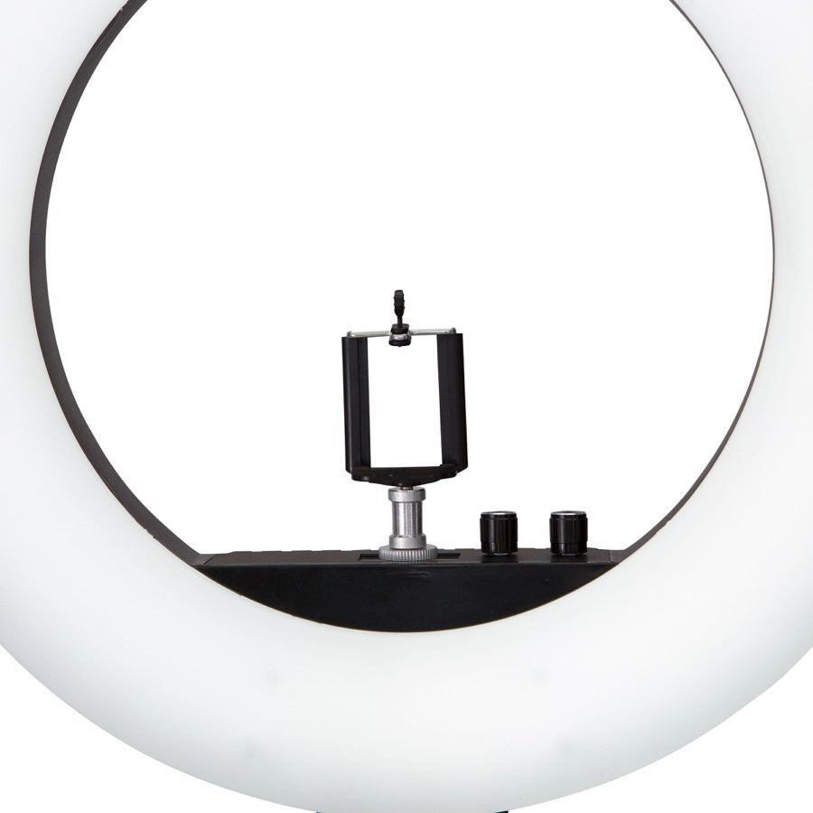 The Impressions Vanity® 18-inch DuoTone LED Vanity Studio Ring Light bundles together the basics to give you the absolute perfect setup. Featuring perfectly diffused dimmable LED lights that transitions from cool to warm white with a simple turn of the dial, it also includes a svelte nylon carry case, adjustable stand, and phone mount.