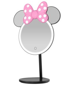 Upgrade your glam game with this Minnie Mouse LED Tabletop Mirror Makeup Mirror. This must-have mirror boasts a handy catchall tray for your trinkets, plus tri-tone lighting with adjustable brightness for a flawless makeup application.