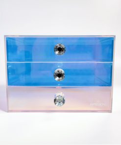 Organize your space with the Prisma 3-Tier Acrylic Organizer. Its durable acrylic shelves and crystal knobs give it a stylish and contemporary look, perfect for any decor. Keep your items organized and easily accessible with this multifunctional storage option.
