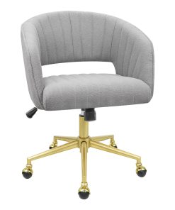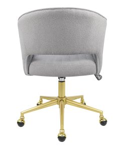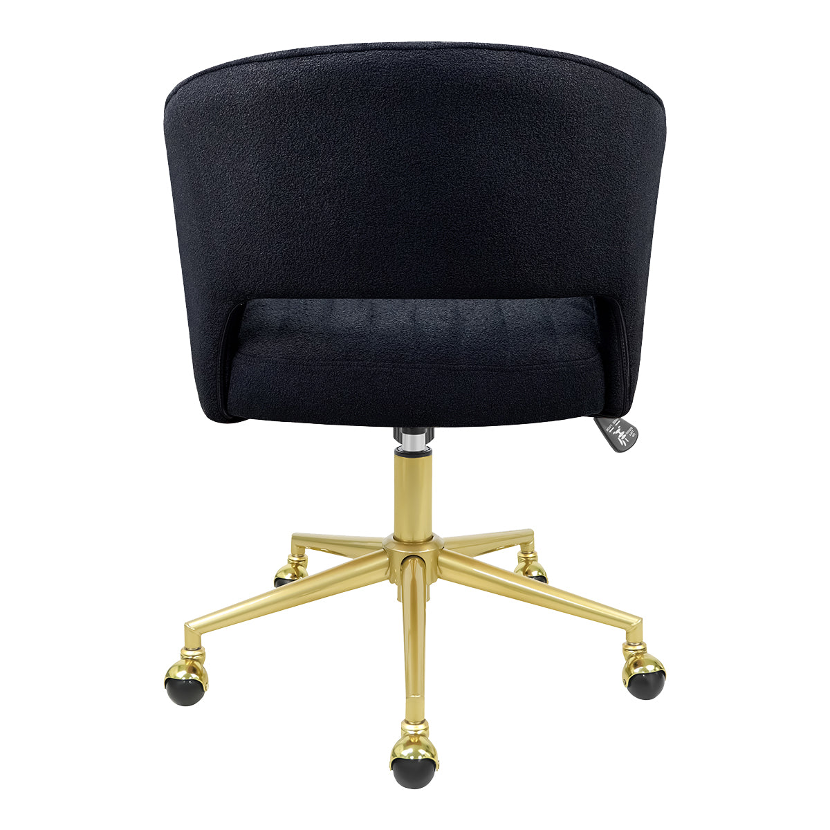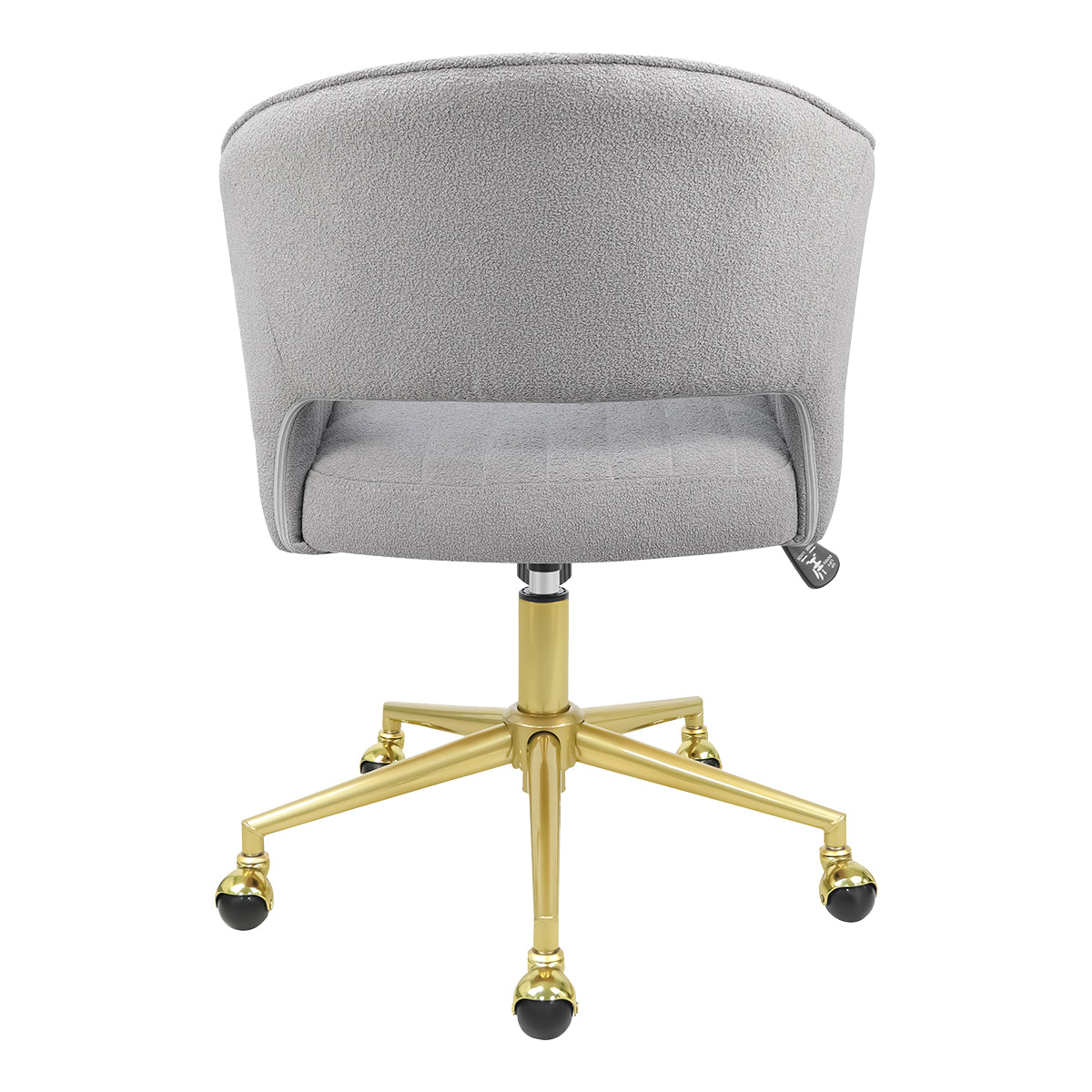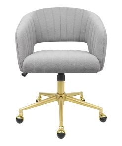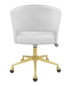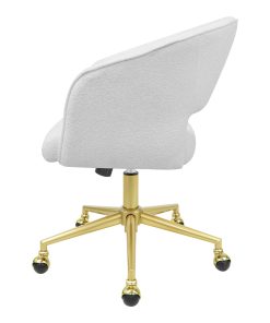 Our Caitlyn chair combines comfort and style into a warm, contemporary design. Designed with a generous, well-cushioned seat, luxe bouclé upholstery and brushed gold hardware- this vanity chair blends a sleek mix of materials with all the functionality you need. Boucle has a textured feeling a little like shearling, adding more comfort and coziness to your glam space or office. The chair is situated on a 5 wheel base allowing you to easily move around your space and a lever to adjust the seat height to your liking.Our products are engineered and tested to meet and exceed industry standards in all areas, weight-bearing exercises included. While we do not provide specific weight limits on seating, this chair is designed to support a full-sized adult.