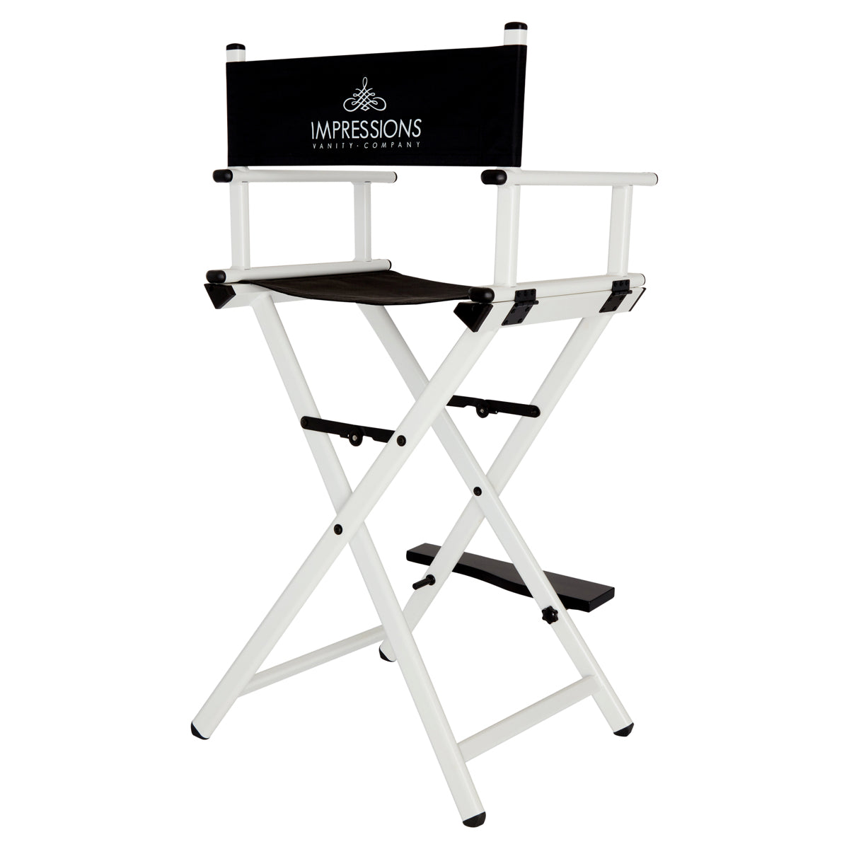 Feel like a pro with Impression Vanity’s Foldable Professional Makeup Artist’s Chair! Designed with a light-weight aluminum frame to help the pro on the go. Easily foldable with inner hinges for increased stability. The seat and backrest use a breathable, comfortable and durable fabric. Backrest includes/displays the Impressions Vanity Company logo.Available in silver, black, white, or rose gold frame.Our products are engineered and tested to meet and exceed industry standards in all areas, weight-bearing exercises included. While we do not provide specific weight limits on seating, this chair is designed to support a full-sized adult.