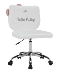 Show off your sweet personality with our Hello Kitty® Kawaii Swivel Vanity Chair! Designed with love and that signature supercute charm we all know and adore. With smooth-rolling wheels and 360 degree swivel, you can effortlessly glide from your vanity to your wardrobe or mirror without leaving your seat. Whether you’re a makeup artist in the making or just love surrounding yourself with all things kawaii, this swivel chair is sure to be a sweet addition to your glam room.P.S: This chair doesn’t just look good; it feels amazing too. A perfect treat for yourself or a special gift for friends that love all things Hello Kitty! **Purchases limited to (1) per order