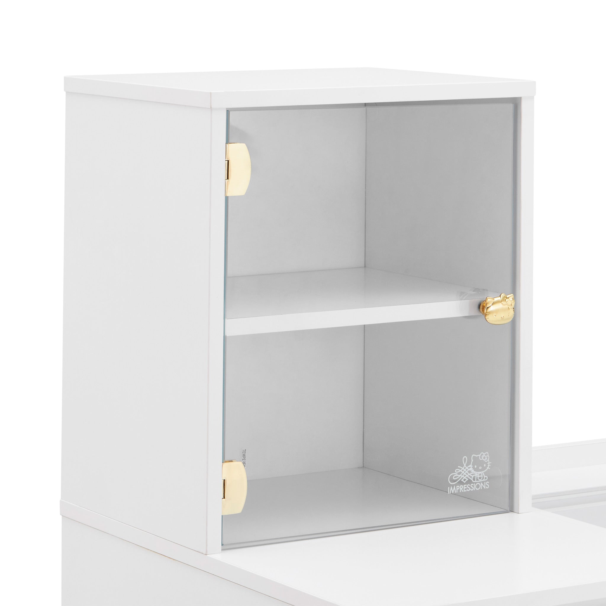 This Hello Kitty® SlayStation® Duet Vanity Desk is a true gem for those that adore a touch of supercute charm to their glam room! If you’re looking for something space-efficient and TONS of storage, you’ve found it! This versatile vanity desk combines the functionality of our SlayStation with Hello Kitty’s timeless style. This desk-and-drawer set boasts a thoughtfully designed storage system, complete with the iconic SlayStation clear-view glass top, spacious front/side drawers, and a tabletop 2 tier shelf display feature. Whether you’re perfecting your glam, or focused on your studies, this multi-purpose vanity desk is designed to make the most of your limited space.**Wipe clean with soft damp cloth. Avoid using harsh chemicals on printed surface**