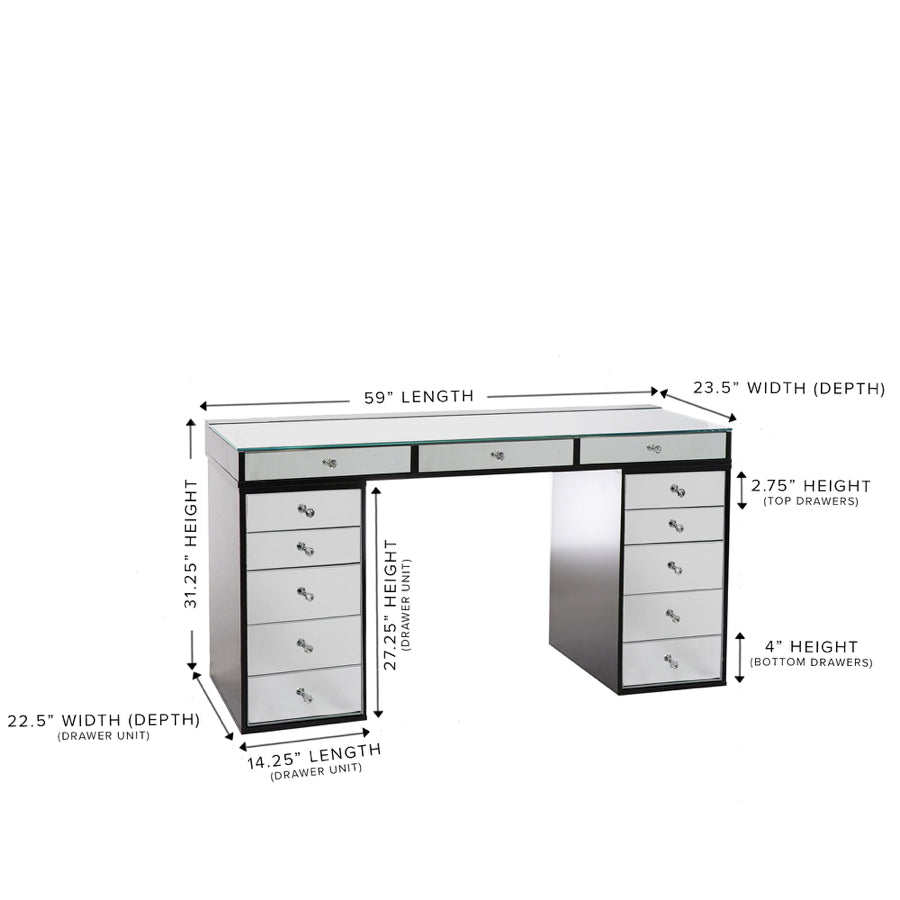 Impressions Vanity Shop Vanity Desks & Tables Leah Premium Mirrored Vanity Table | Black