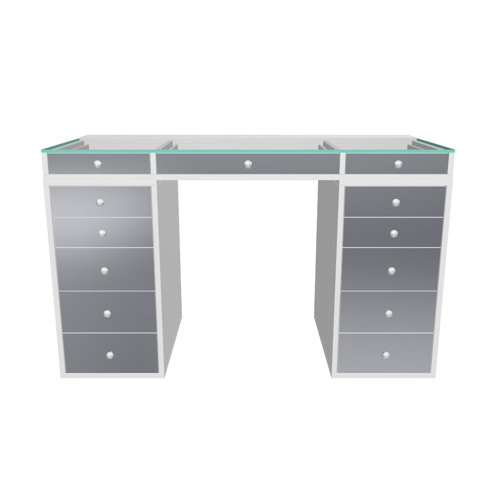 Get ready to slay all day in our SlayStation® 2.0 Mirrored Tabletop and SlayStation Mirrored Drawers! This bundle features our SlayStation 2.0 tabletop that includes 3 drawers that are highlighted with our crystal lux drawer knobs along with mirrored front drawer panels. The SlayStation features an edge-to-edge clear glass top for you to display your vanity accessories and makeup! Place your chic tabletop on the sturdy SlayStation drawers for the complete look. Features 5 soft-close drawers that are highlighted with our Crystal Lux drawer knobs.
