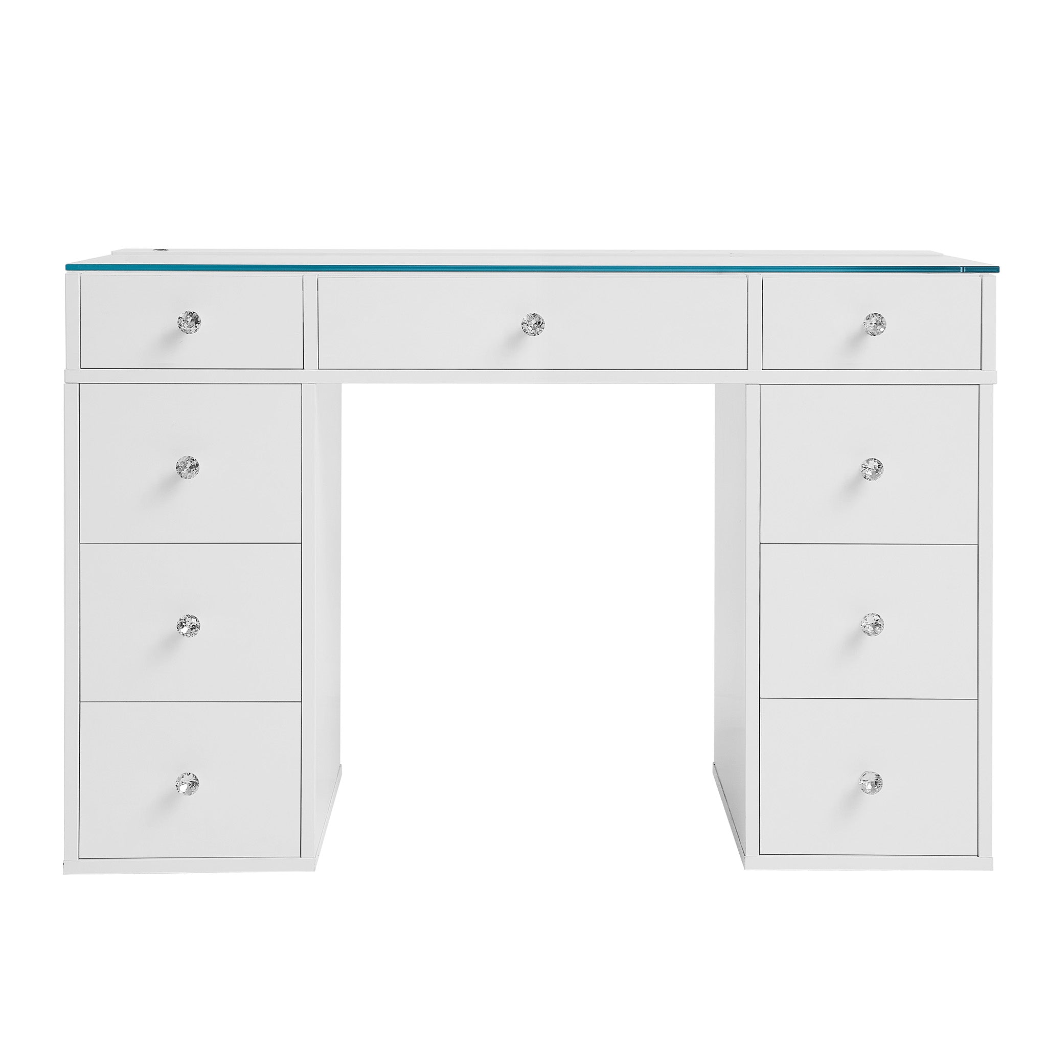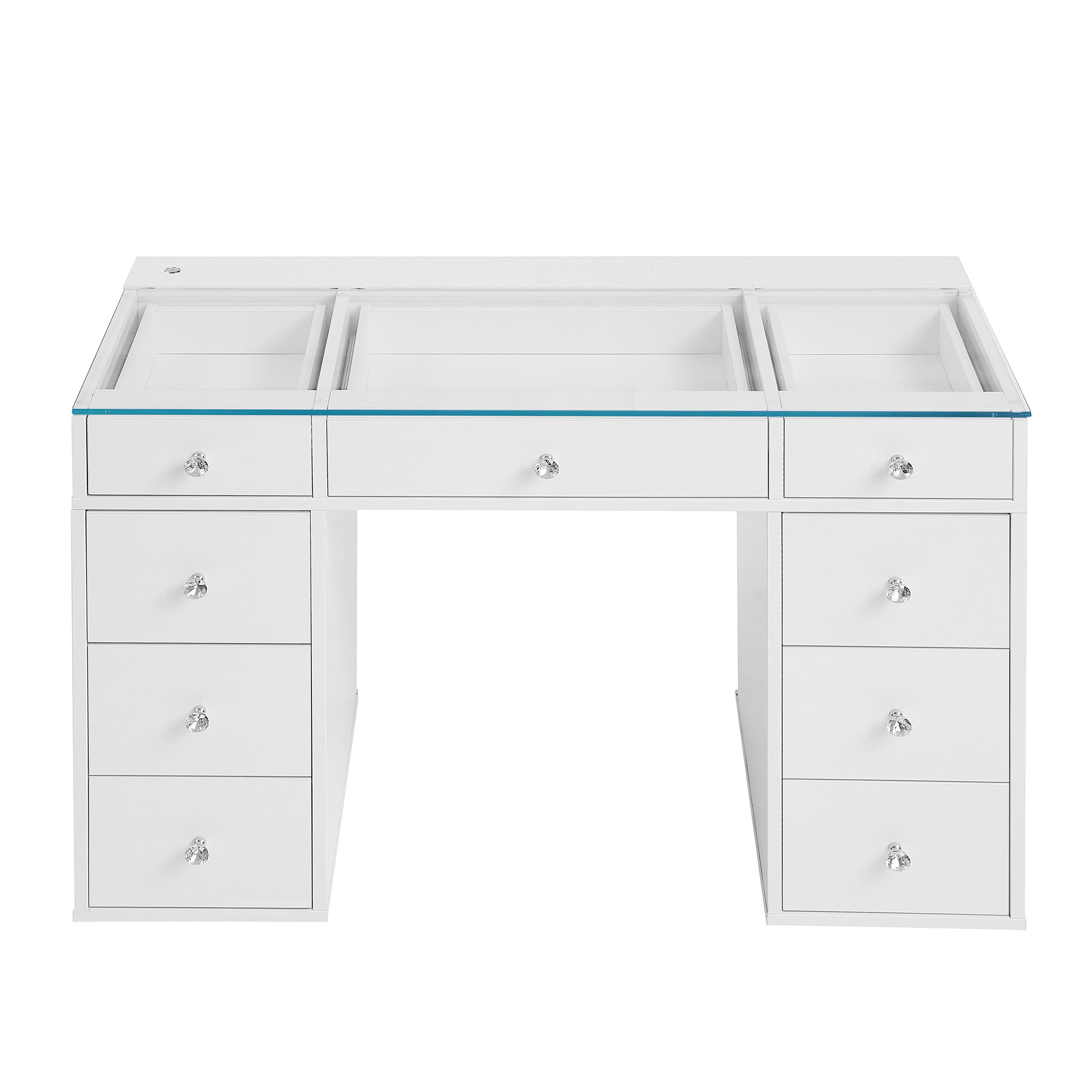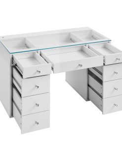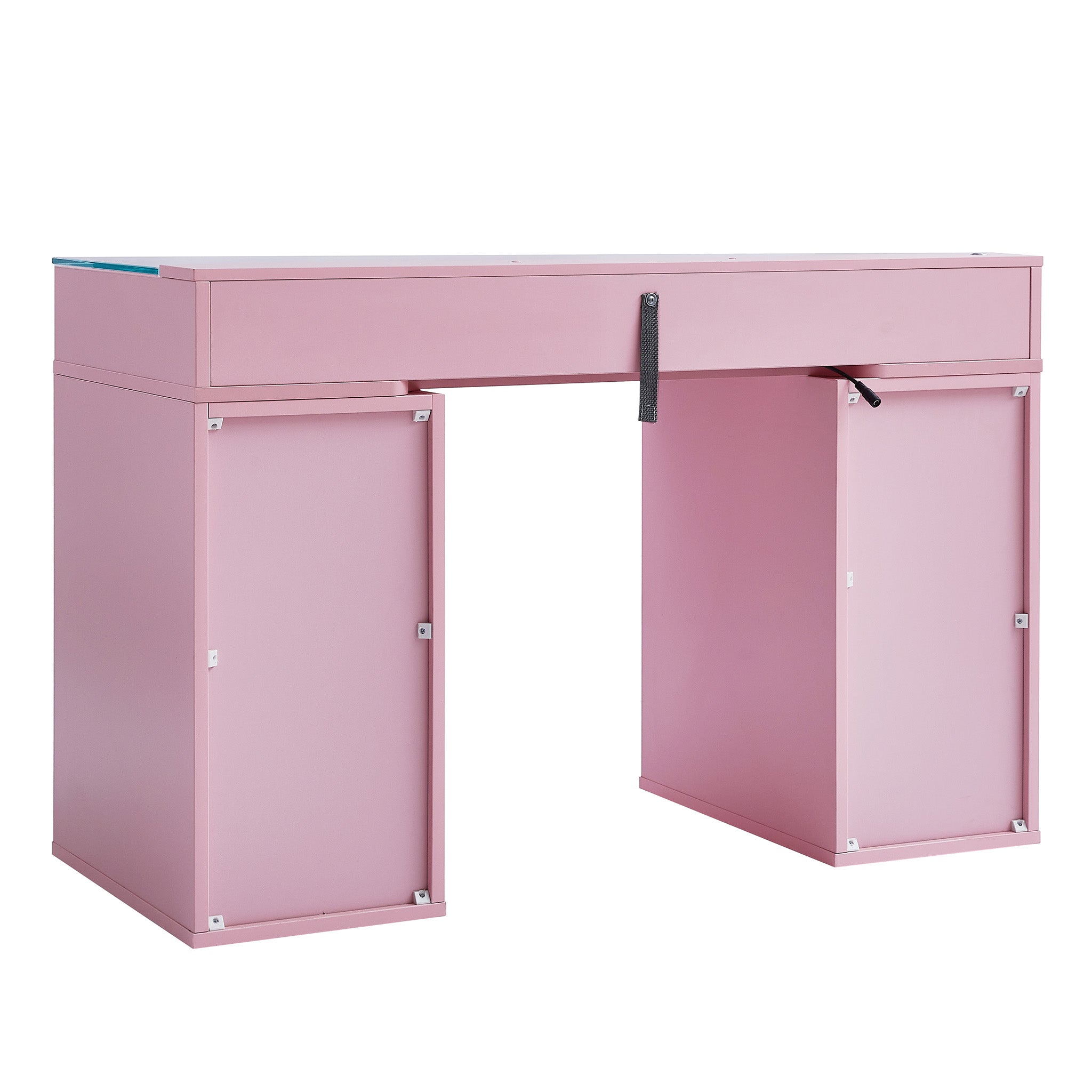 This mini version of our iconic SlayStation features a crystal-clear tabletop with a built-in LED light strip, perfect for illuminating all your favorite accessories, crafts, and treasures. Designed with little stars in mind, it offers plenty of drawer space to keep everything organized and within reach.