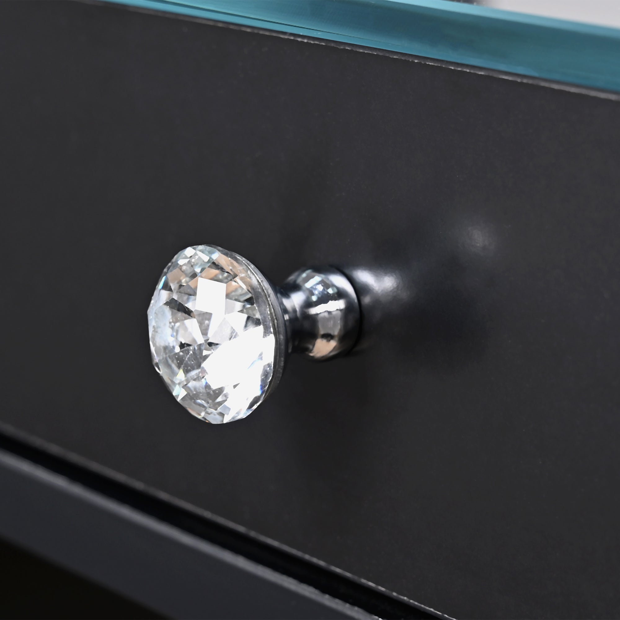 Move out the way, ultimate storage space with the Odette Slaystation Vanity Table is here to stay! More modern than ever before, a fresh take on an old Hollywood classic. This bundle features our SlayStation tabletop that includes 5 drawers. The side drawers feature a clear glass top for you to display your vanity accessories and makeup with a chic border! The Odette Slaystation is a sleek design that elevates the look of any space. The table has crystal lux knobs for a polished, refined look. Plus, the center drawer has 6 preset compartments for all your beauty essentials.