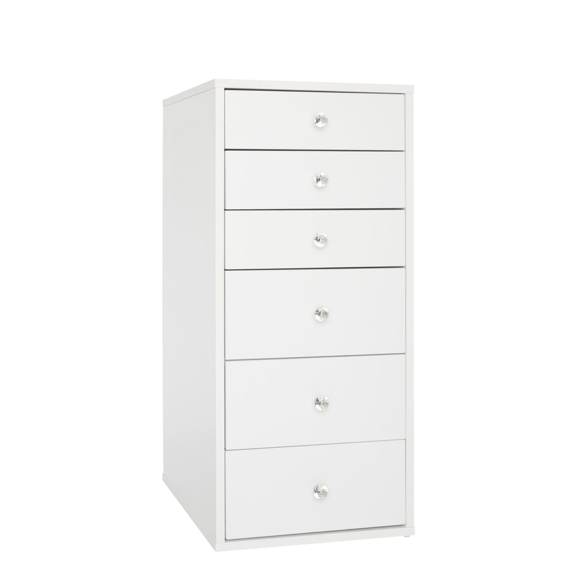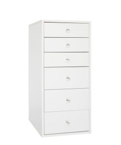 Cue in our signature SlatStation® Vanity Storage Units for that chic look to your vanity set-up! Elegant if you wish to have it as a stand-alone and sturdy to support your Makeup Vanity Tabletop. Features soft-close drawers that are highlighted with our crystal lux drawer knobs.Available in 3 classy colors.