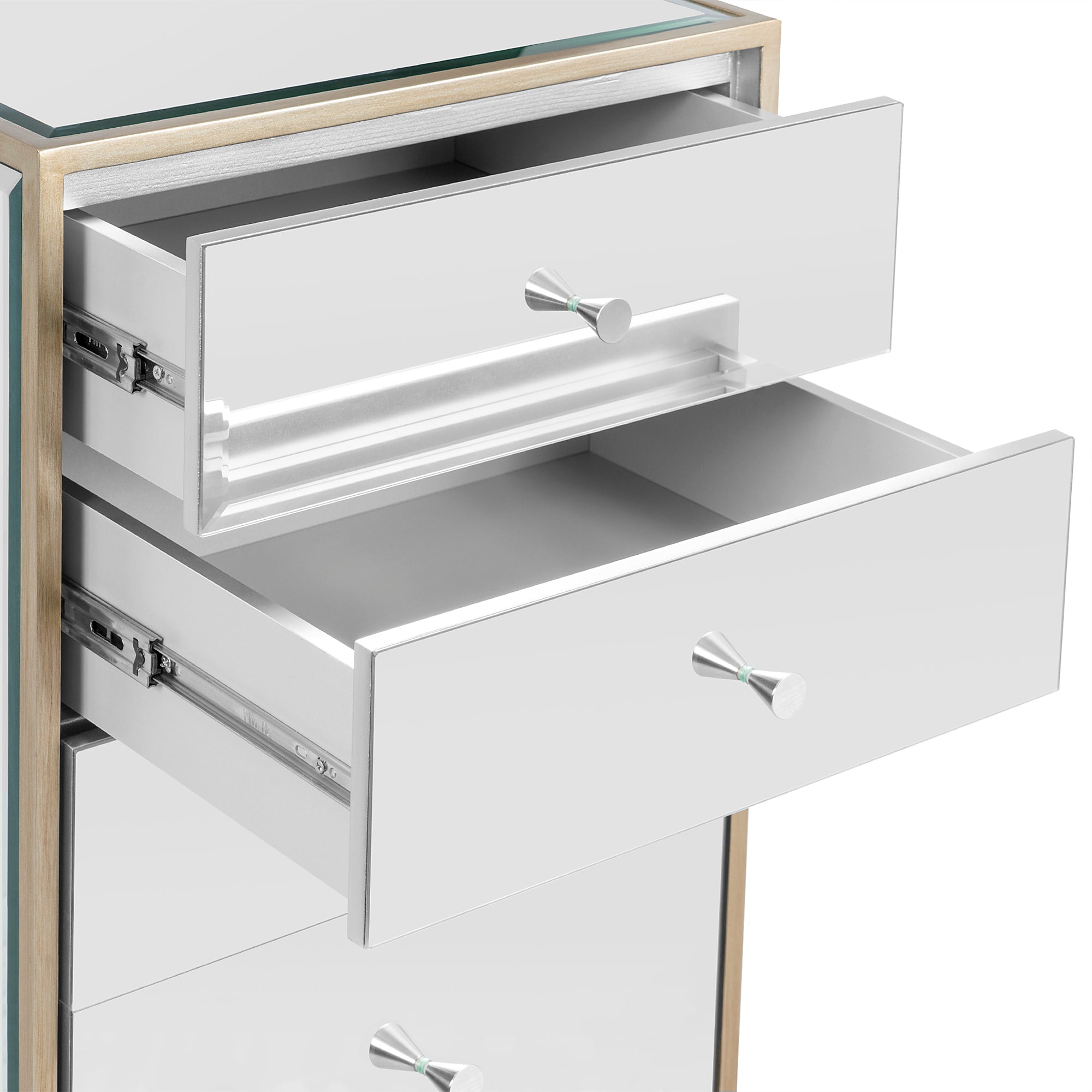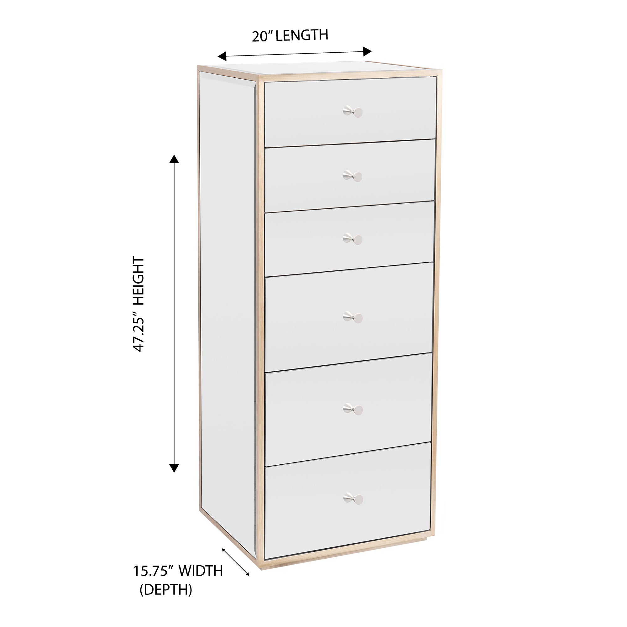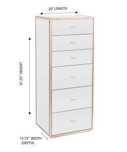 Our SlayStation® Rylie Mirrored 6-Drawers Vanity Storage Unit gives a chic look to your vanity set-up! Elegant if you wish to have it as a stand-alone and sturdy to support for your Makeup Vanity Tabletop. Features brushed silver metal knobs.*This product requires Residential Curbside delivery (Freight Service) within the contiguous United States