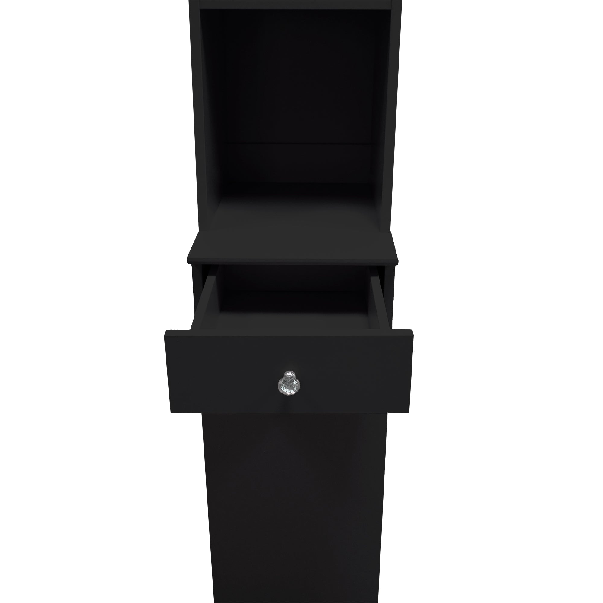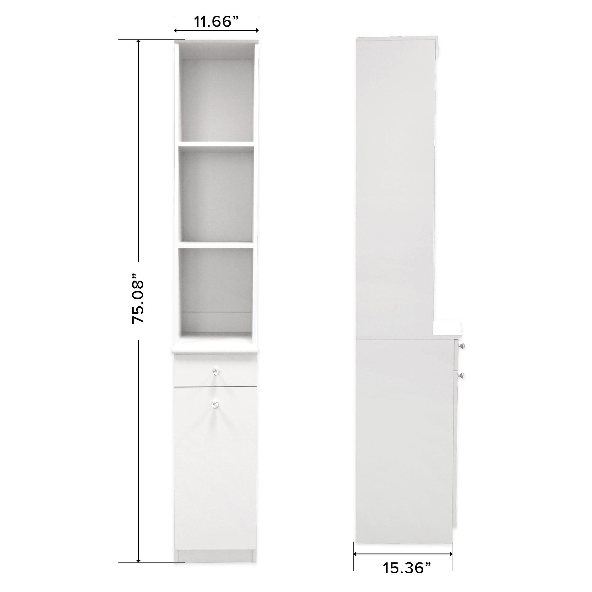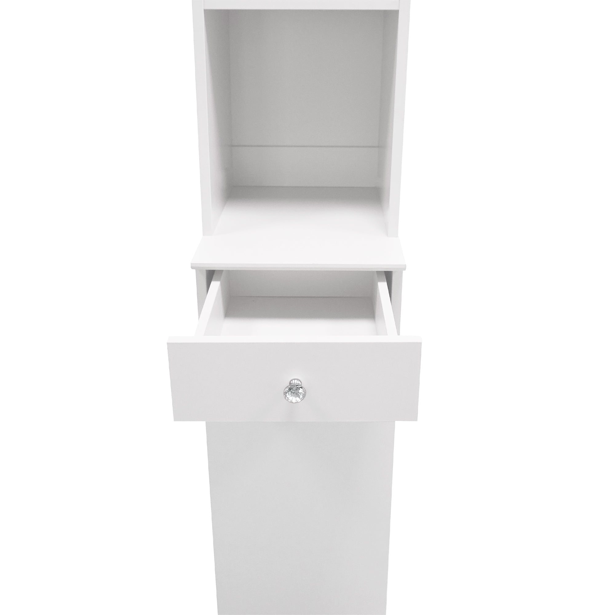 Classic details including optimum space and crystal knobs give the innovative Slaystation® Storage Cabinet timeless appeal. Three luxury shelves to display your most cherished items rests on a plinth cabinet base. Designed to pair with any Impressions Vanity piece, it creates a glam space that is both functional and stunning.Comes with an anti-tipping bracket that may be installed at the back for your safety. Screws and plastic wall dowels are included for mounting! However, different wall materials require different types of fixing devices. Use fixing devices suitable for your walls. If you are uncertain about what type of mounting device to use, please contact a local hardware store for help.